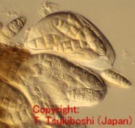 Morphology: Teleomorph: In light to yellow brown, subglobose perithecia, producing oval to ellipsoidal asci. Ascospores hyaline to light yellow, fusoid to ellipsoid, 26-46x11-18um in size with 1-2 vertical and 3 transverse septa. Anamorph: Unknown |