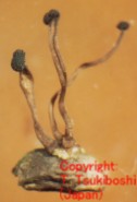 Morphology: Teleomorph: Producing stromata with a brown stipe and dark brown capitula, 4-18 mm in height from blackish purple ergot (sclerotia). Ascocarp embedded on the surface of capitula, pyriform, producing cylindrical asci inside. Ascospores hyaline, filiform, 92-205 x 0.5-1 um. Anamorph: Many conidia produced on the surface of sclerotia and in the honeydew, hyaline, ellipsoid, 5-11 x 2.5-3.8 um. Secondary conidia have not been reported in nature. |