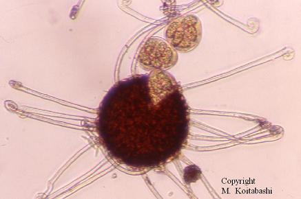 形態: 有性世代:先端が巻き込んだ付属糸を持った閉子のう殻を形成。内部に(3〜)4〜6個の子のうを作り、子のう胞子は(4〜)5〜7個生じる 無性世代:分生子形成は単生。だ円〜長だ円で大きさは30〜43×13〜18μm。 |