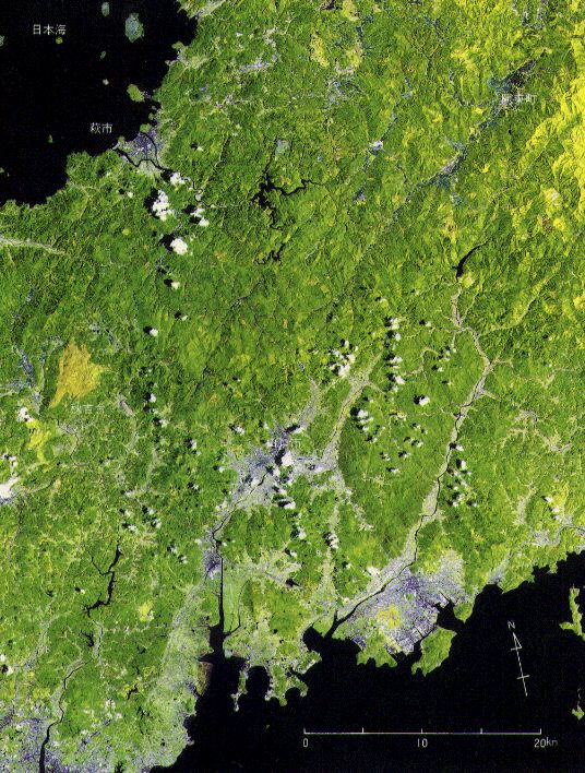 画像は日本海に臨む萩市から瀬戸内海の防府市までを縦断する山口県中央部である。山口県は三方を海に囲まれ,内陸部は中国山地の西端にあたり,標高500メートル以下の小起伏の丘陵が多く,大平野,大河川が少ない。このため気候の地域差は小さく,冬には北西季節風が卓越するが,農業の気候的条件としては比較的恵まれている。