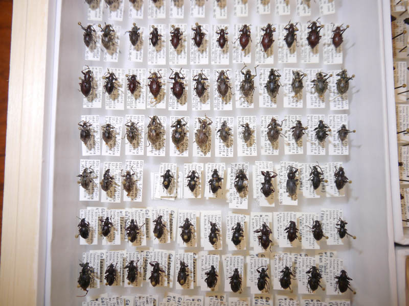 私は Natural Heritage Building があるガティノーの郊外、アイルマー地区に滞在しました。この施設には100万点を越える昆虫標本が保管されており、そのほとんどが甲虫類(カブトムシの仲間)で、その中には私の研究対象であるゾウムシ類の標本が約35万点含まれています。カナダ自然博物館の昆虫コレクションは世界各地から収集されたものですが、地域的に見ると、とくに北米や中南米産の標本が充実しています。合理的に標本の管理が行われているため整理状態はすこぶる良好で、たいへん利用しやすいコレクションです。