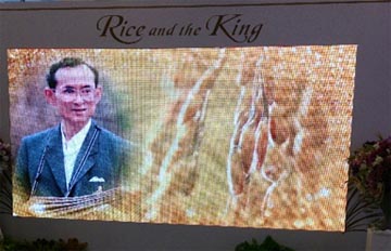 <ラーマ9世> タイは国王が存在する王国です。現国王であるラーマ9世は、タイの農業発展にも大きく貢献されており、その功績を紹介する展示が会場のメインロビーで行われていました。