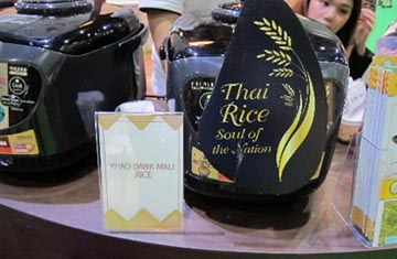 <香り米> 南・東南アジアでは香り米(Aromatic Rice)が高級品種として食されています。タイでは Khao Dawk Mali(カオ ド マリ)が有名です。報告者はタイ農業・協同組合省の展示ブースで玄米と精米の Khao Dawk Mali の試食をしてきました。香ばしい香りが特徴的で大変おいしく感じました。とくに玄米の風味の高さが印象に残りました。ちなみに使用していた炊飯器は日本のメーカーのものでした。