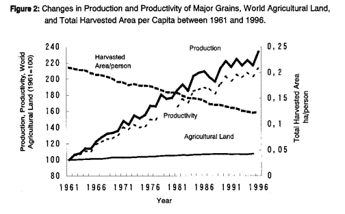 43. こうした論議に基づいて、1996年のFAOの行動計画では、「伝統的作物やその産物を含め、農業生産を増加させ、これと食料輸入、備蓄並びに国際貿易とを効率的に組み合わせることが、食料安全保障を強化し、地域間格差に対処するものとなる」と記された。