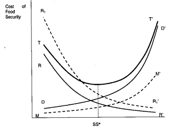 ・ 上記のいろいろな曲線の特性や、それらが食料安全保障の最適レベルにどのように影響するかは、各国の条件や消費者/納税者のリスク嫌いの程度に依存する経験的性格のものである。 |