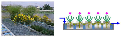 前に勤めていた研究所でも、イネや飼料作物、花などの植物による水質浄化を研究していました。水路に特殊な石を敷き詰めて植物を植え、低い水位で汚れた水を流します。すると植物は窒素やリンを吸収して成長し、同時に、自然に石に住み着いた微生物も汚れを分解します。