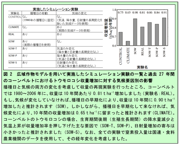 気候変化の収量影響は既に発生しており、その影響を検出し、主な気候要因を特定することで、より信頼性の高い適応策の開発に結び付けることが期待されます。