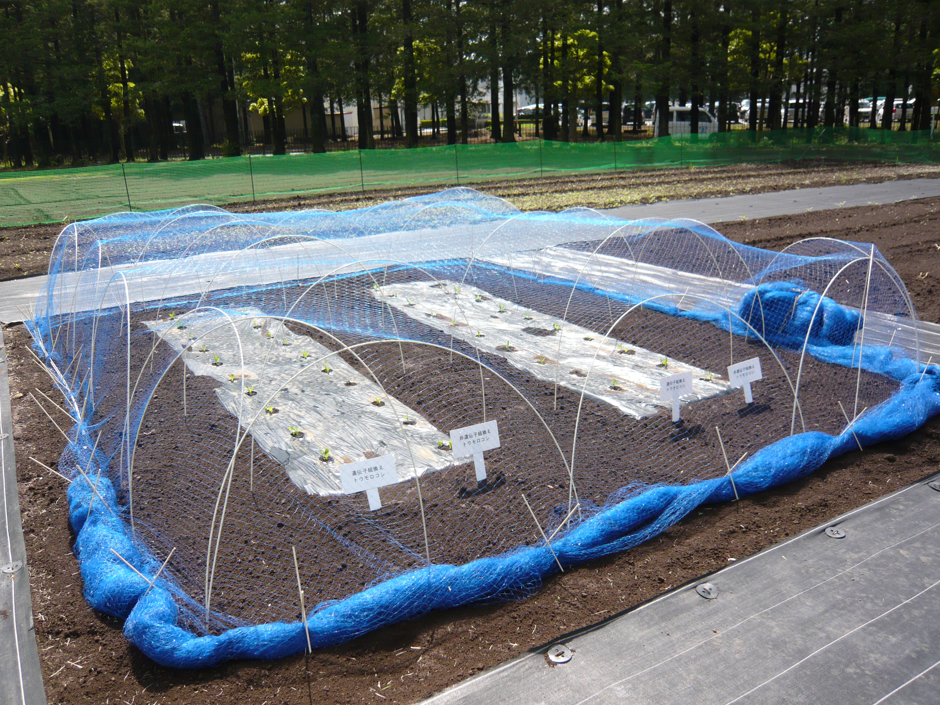 2012年5月16日(水)遺伝子組換え/非遺伝子組換えトウモロコシ混栽区の様子混栽区播種後8日目の様子です。 トウモロコシは発芽し、葉が2〜3枚程度にまで生育しました。 なお、番外編として来月ダイズの種子を播く予定の区画の写真を2枚掲載します。 番外編1は、昨年、非遺伝子組換えダイズを播種し、除草剤を散布し、雑草の発生を抑えた区画です。番外編2は、遺伝子組換えダイズを播種し、一切除草作業をせずに雑草とダイズが共に生育していた区画です。番外編2には雑草の芽がたくさん出ているのがわかります。前年に除草作業をしないと、これだけ雑草の種子が落ちて残ってしまうとともに、除草作業の重要性がわかるかと思います。 | ||||||||
