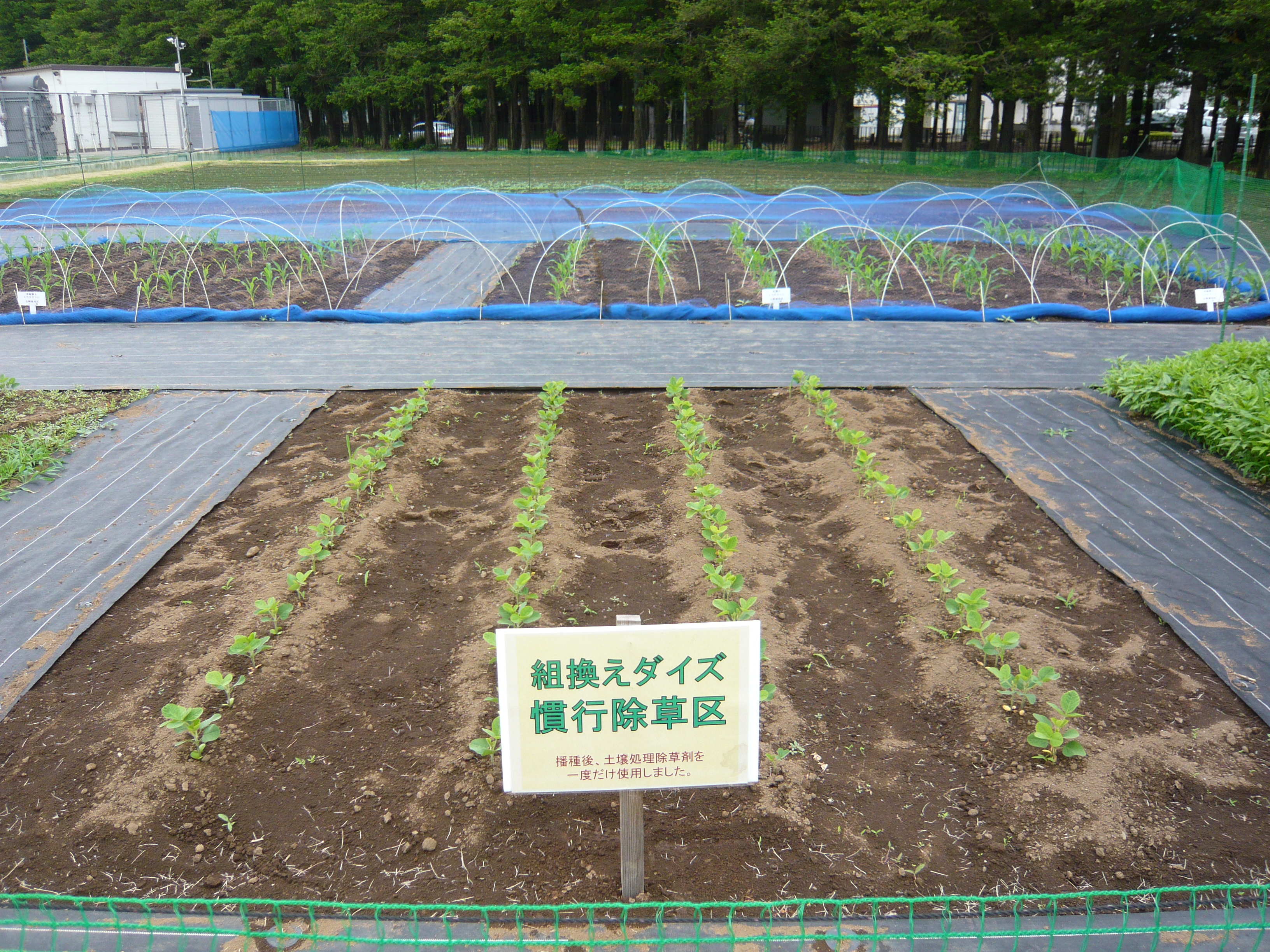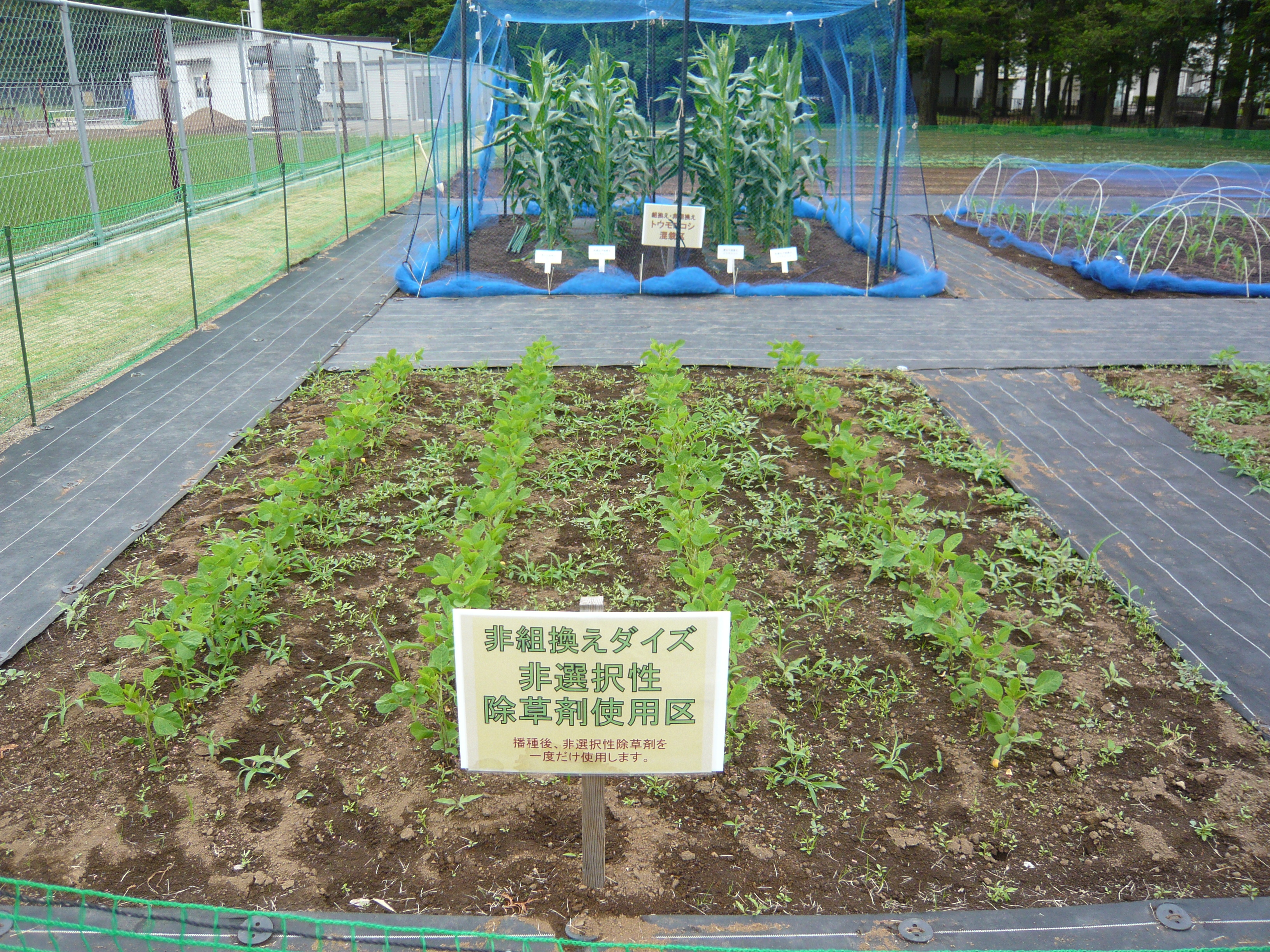 トップページ > 遺伝子組換え作物の圃場試験 > 展示ほ場における遺伝子組換えダイズおよびトウモロコシの生育状況(2012年) > 展示ほ場における遺伝子組換えダイズ及びトウモロコシの生育状況(2012年7月3日 撮影)