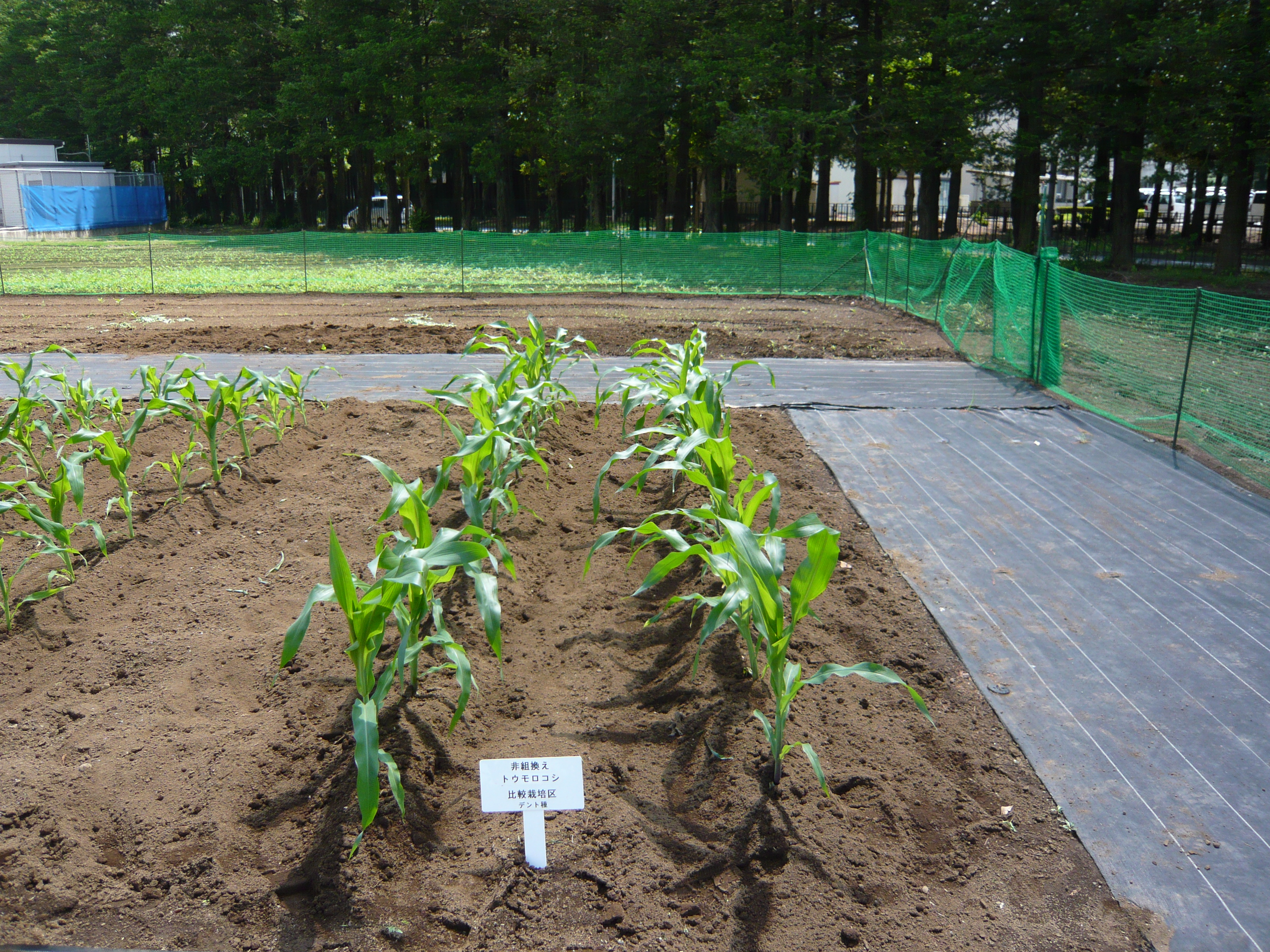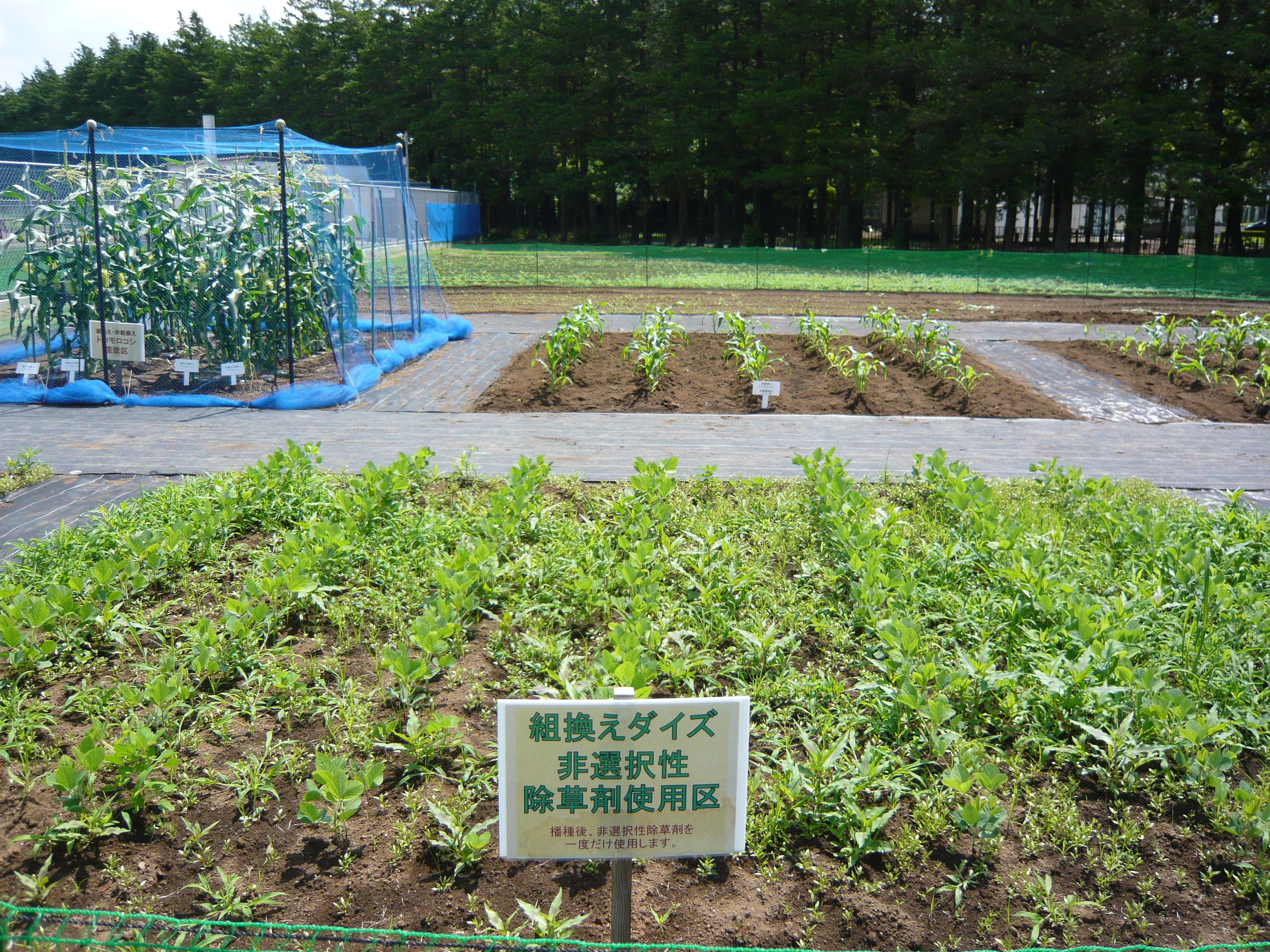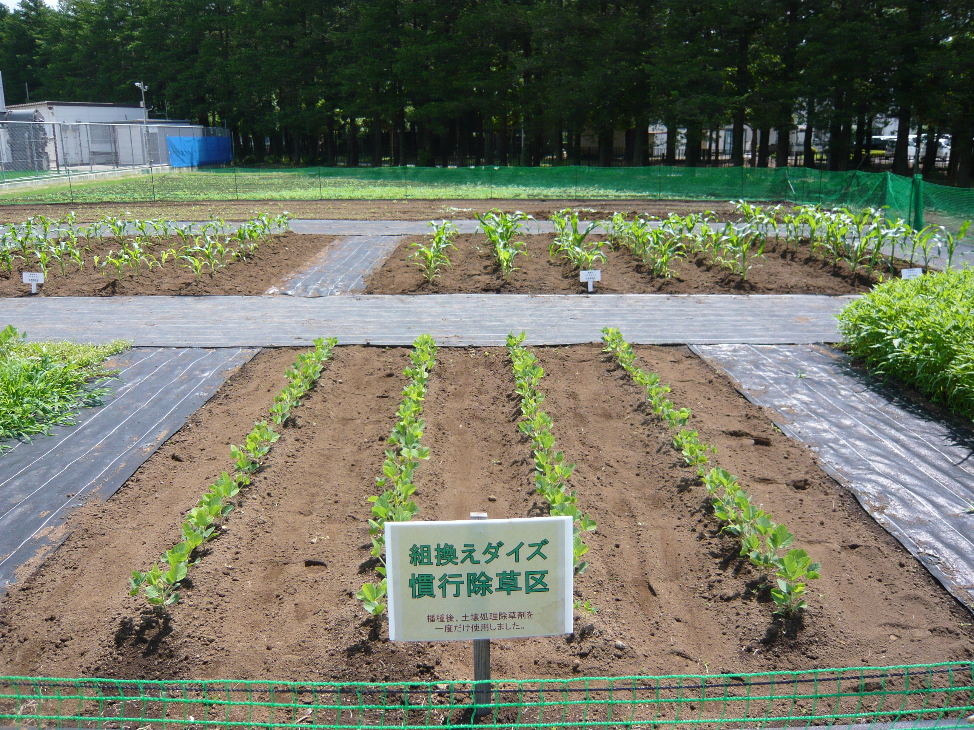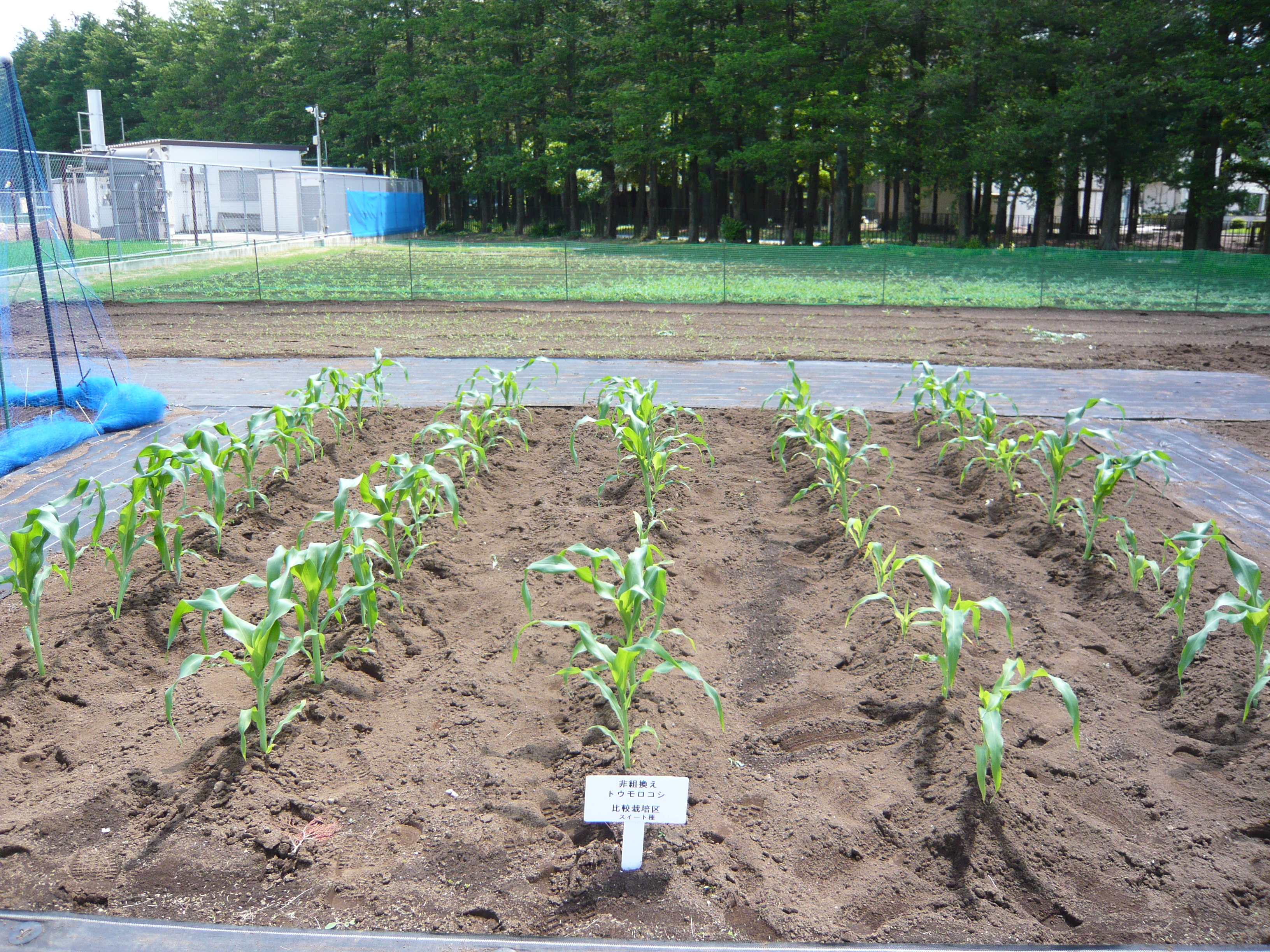 トップページ > 遺伝子組換え作物の圃場試験 > 展示ほ場における遺伝子組換えダイズおよびトウモロコシの生育状況(2012年) > 展示ほ場における遺伝子組換えダイズ及びトウモロコシの生育状況(2012年7月10日 撮影)