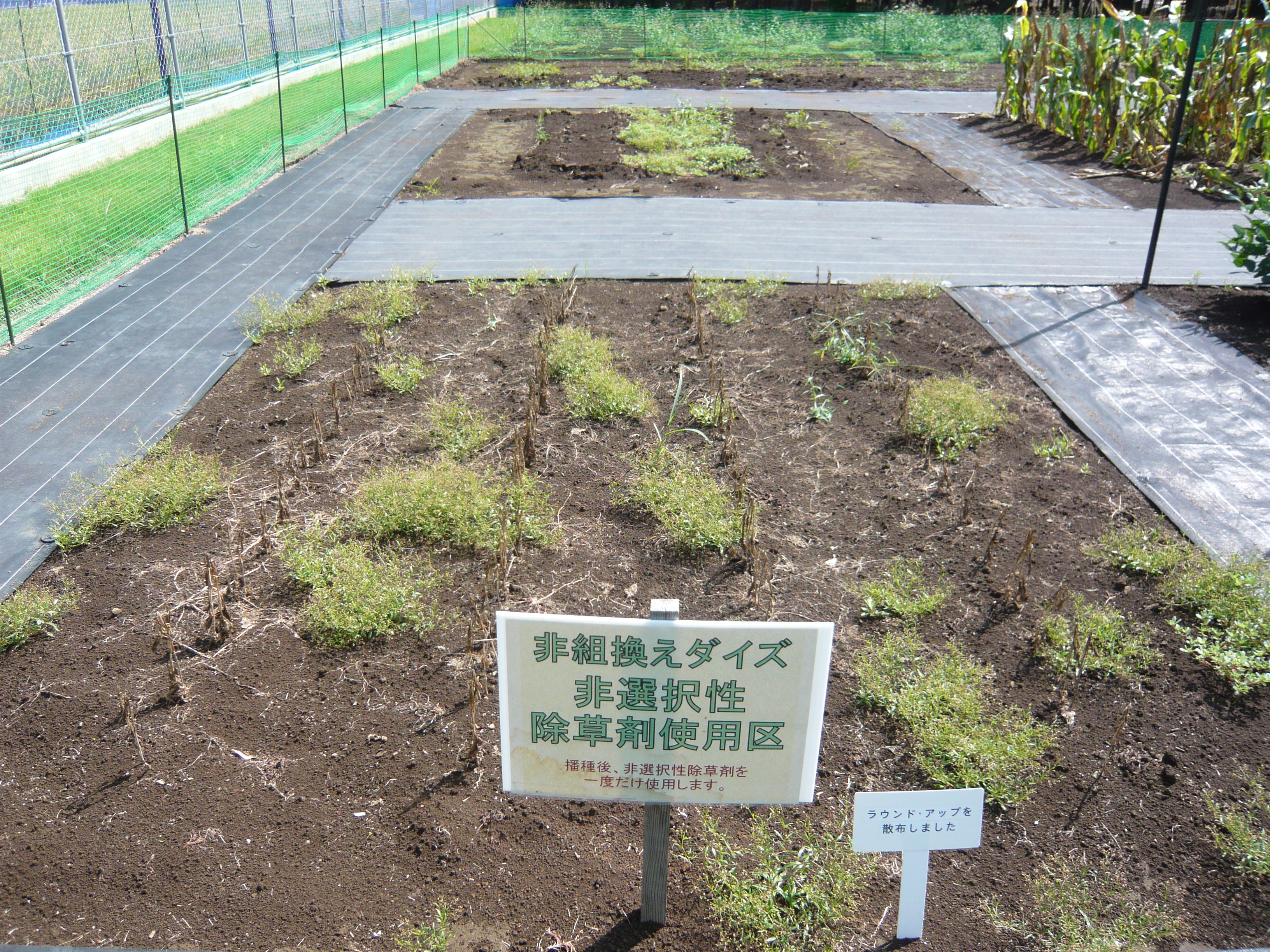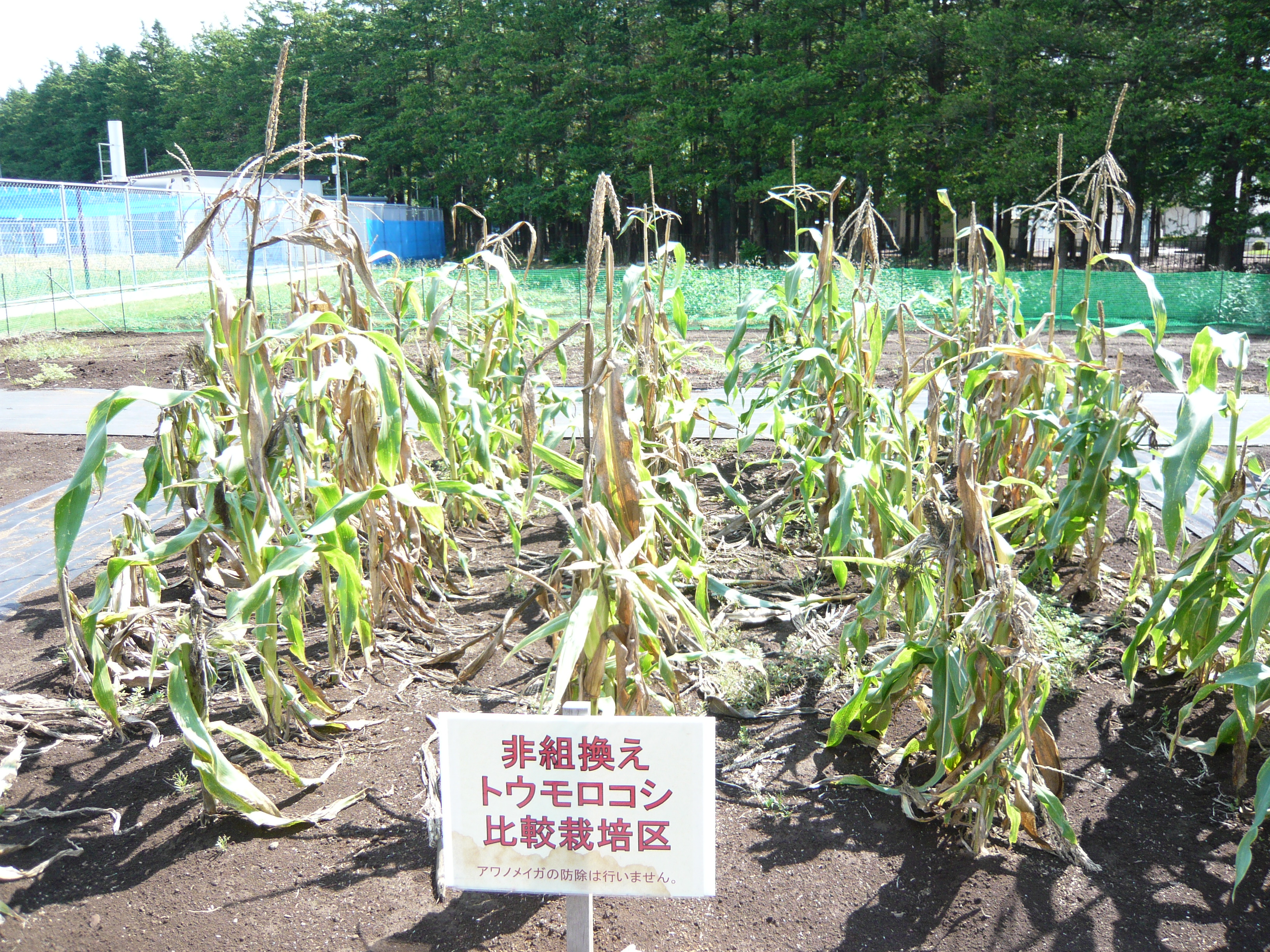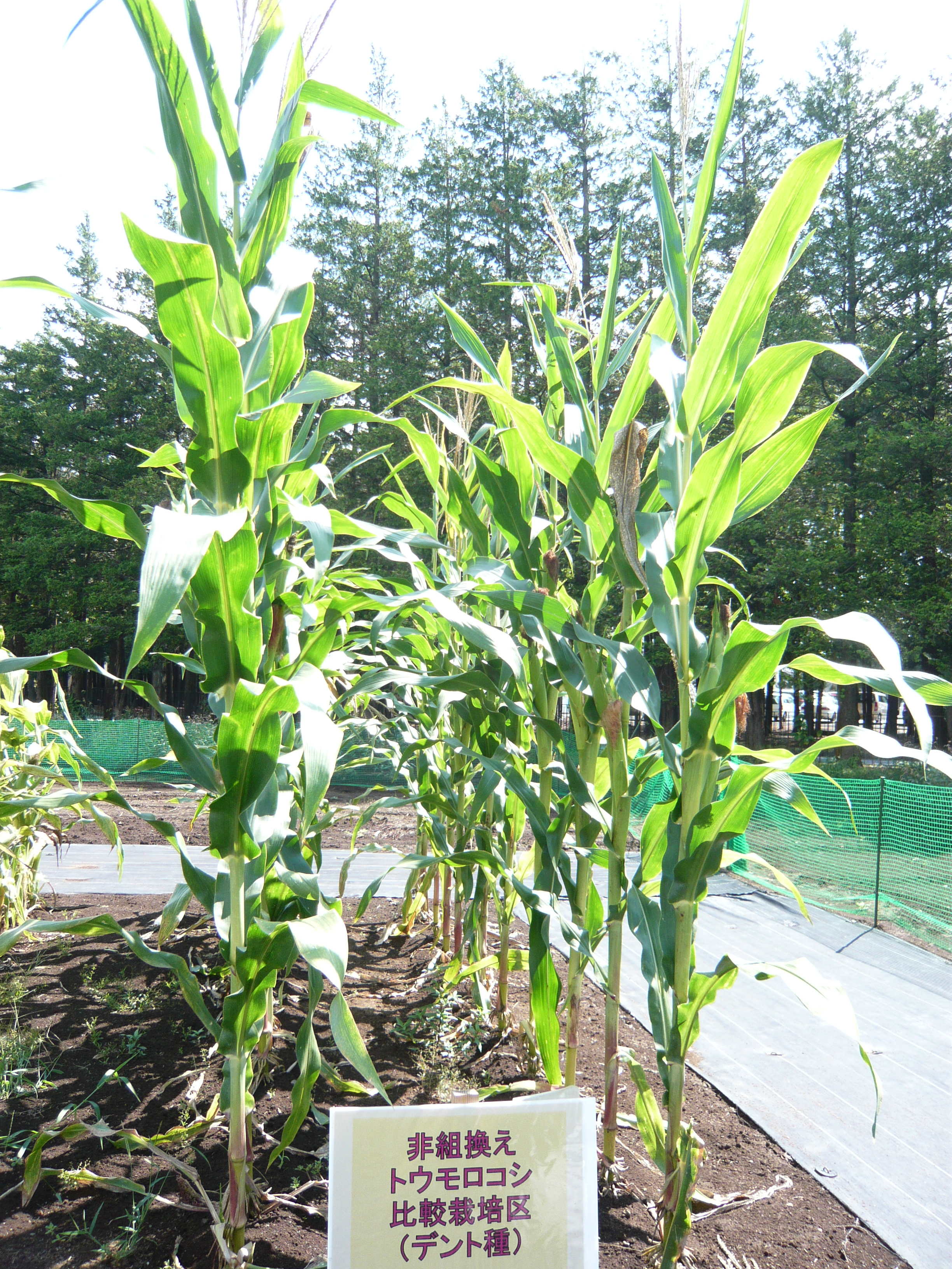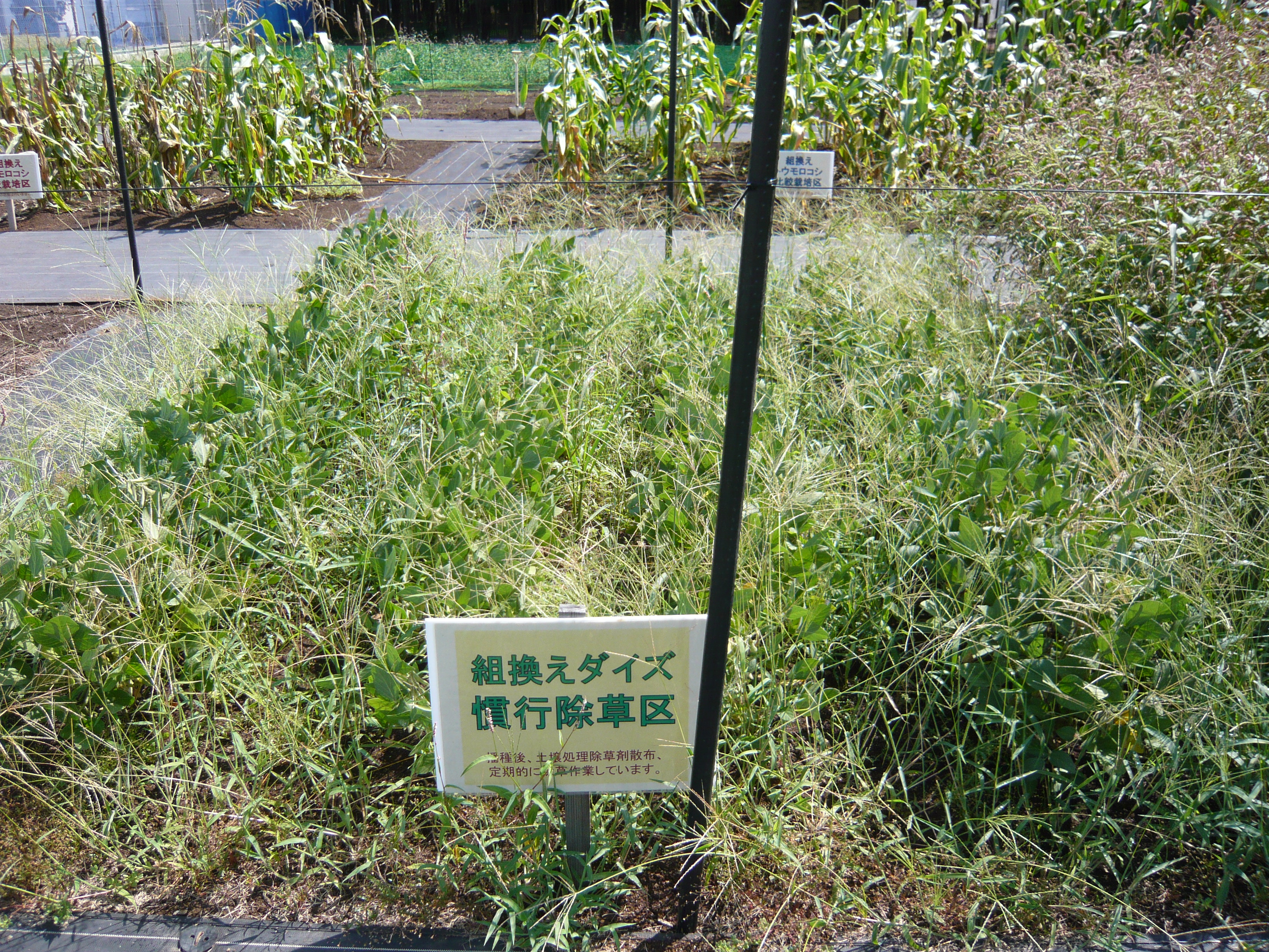 トップページ > 遺伝子組換え作物の圃場試験 > 展示ほ場における遺伝子組換えダイズおよびトウモロコシの生育状況(2012年) > 展示ほ場における遺伝子組換えダイズ及びトウモロコシの生育状況(2012年9月4日 撮影)