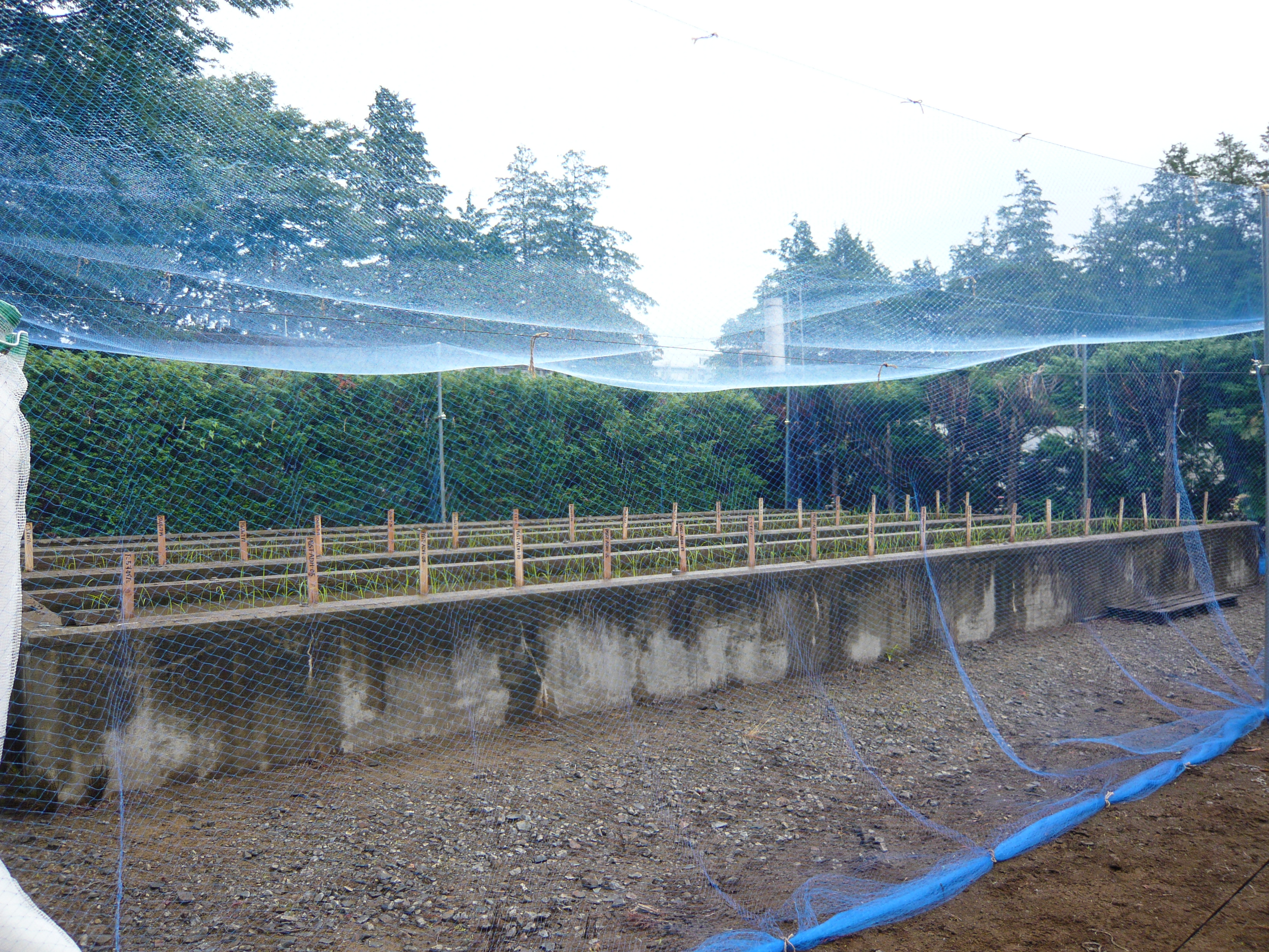 5月23日に一般説明会を開催した、遺伝子組換え複合病害抵抗性イネの田植えを行いました。この遺伝子組換えイネは(独)農業環境技術研究所(農環研)内の隔離ほ場内の水田にて栽培します。栽培実験の詳細については栽培実験計画書をご確認ください。