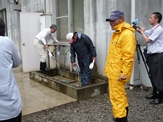 長靴洗浄の様子。