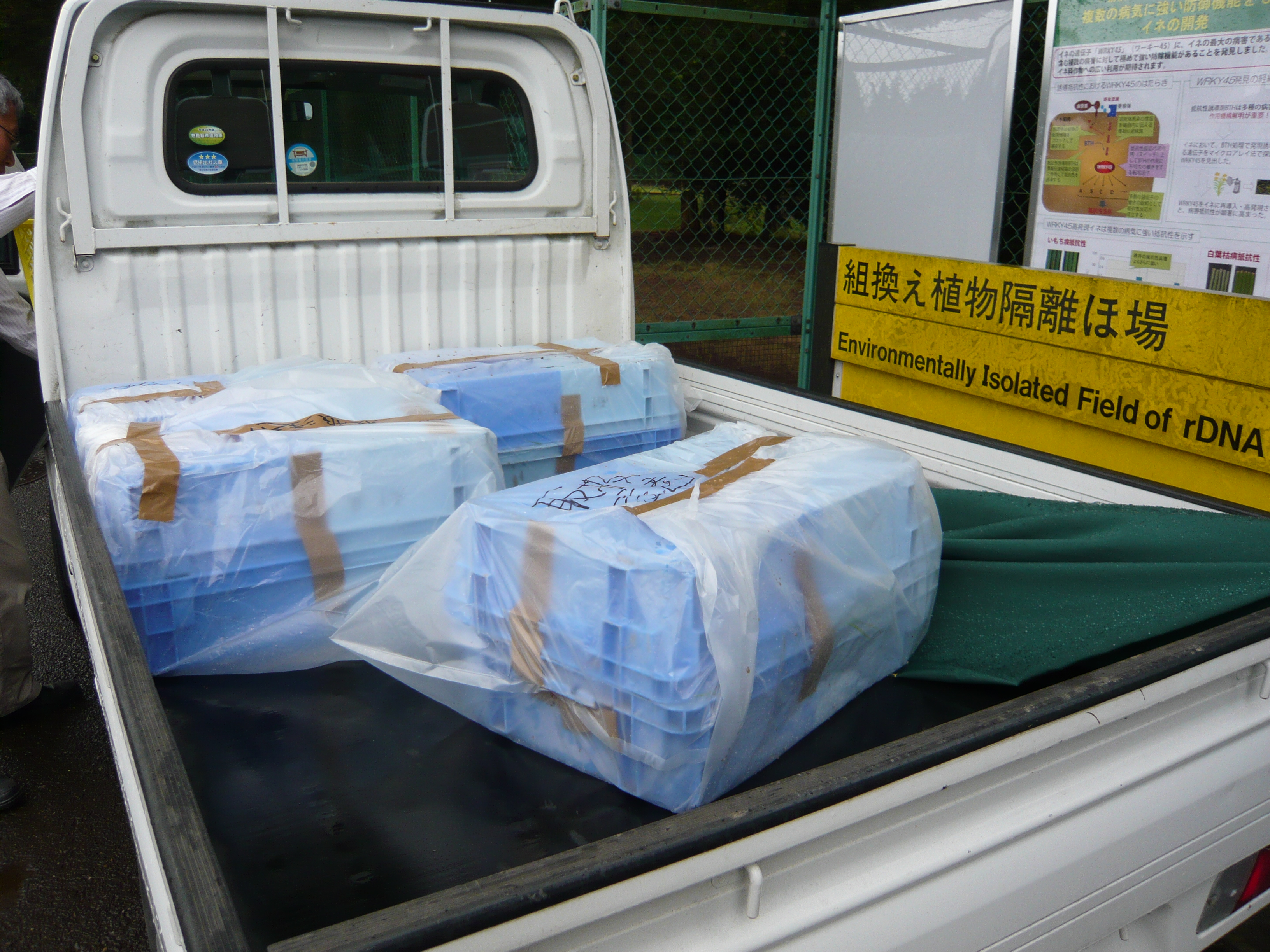 隔離ほ場に運び込む様子。