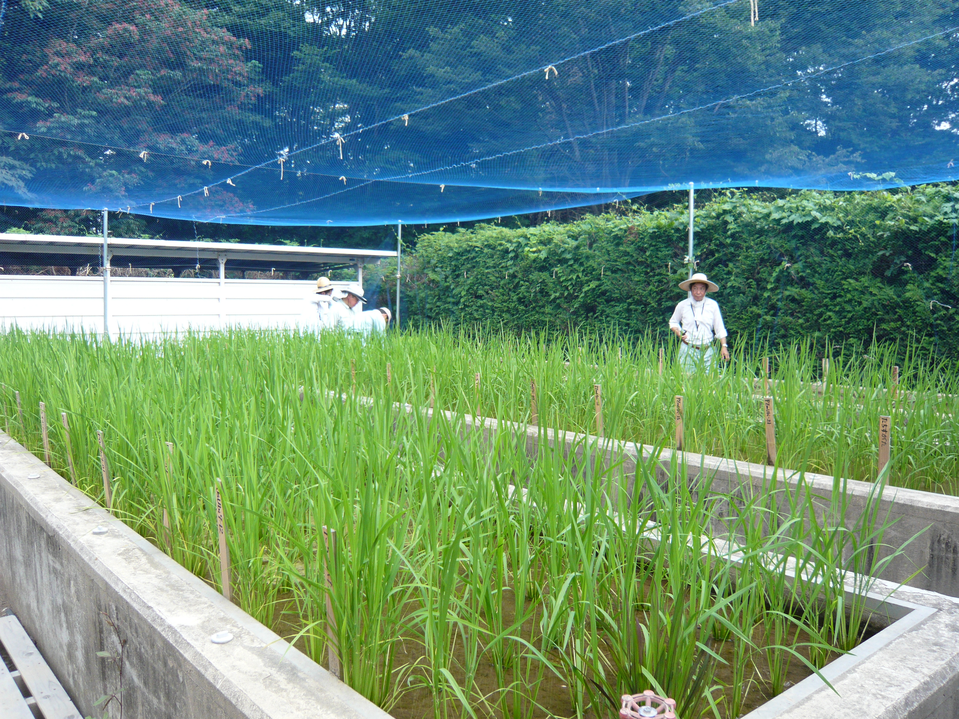 トップページ > 遺伝子組換え作物のほ場試験 > 農環研隔離ほ場における複合病害抵抗性イネの生育状況(2013年) > 農環研隔離ほ場における複合病害抵抗性イネの生育状況2013年7月10日撮影)