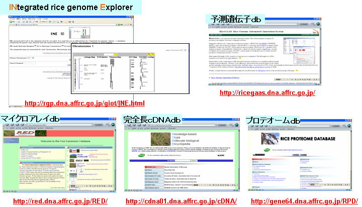 また、イネゲノム研究で作成された様々なデーターベースはグリーンテクノ計画のデータベースへのリンクからアクセスすることができます。