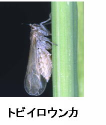 トビイロウンカはイネの最も重要な害虫で、イネの汁液を吸います。この虫が多く発生すると、夏の終わりから水田の中に穴があいたように突然イネが枯れ込みます。古くはこの虫の大発生によって飢饉がもたらされたと言われています。