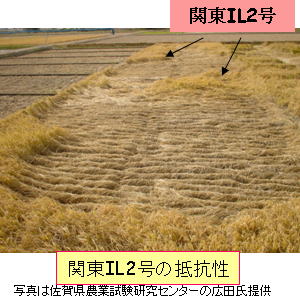 実験圃場で「関東IL2号」は実用的抵抗性を示し、他形質については「ヒノヒカリ」と同等であったので新品種候補になりました。