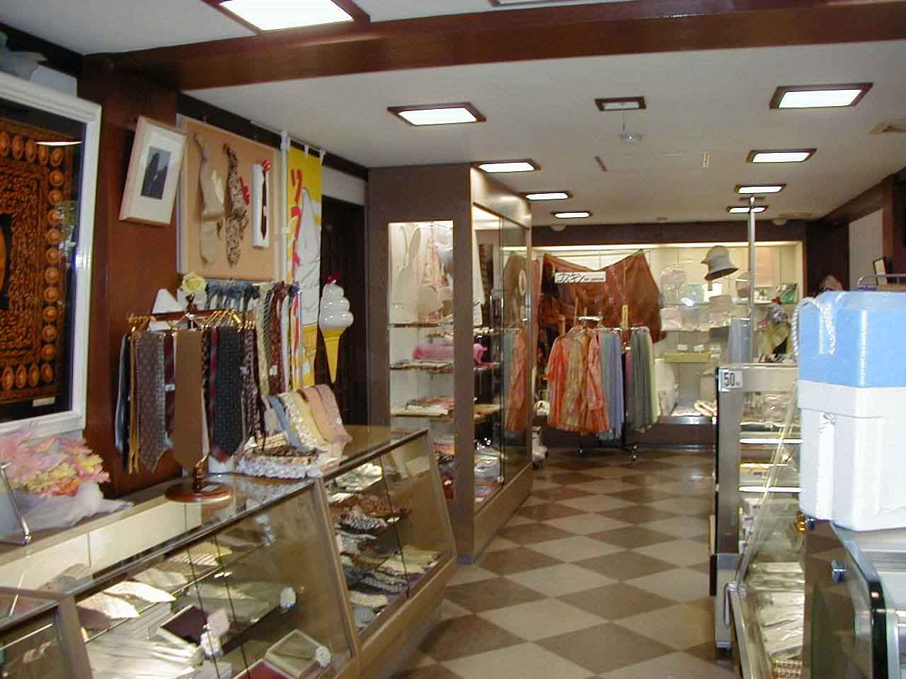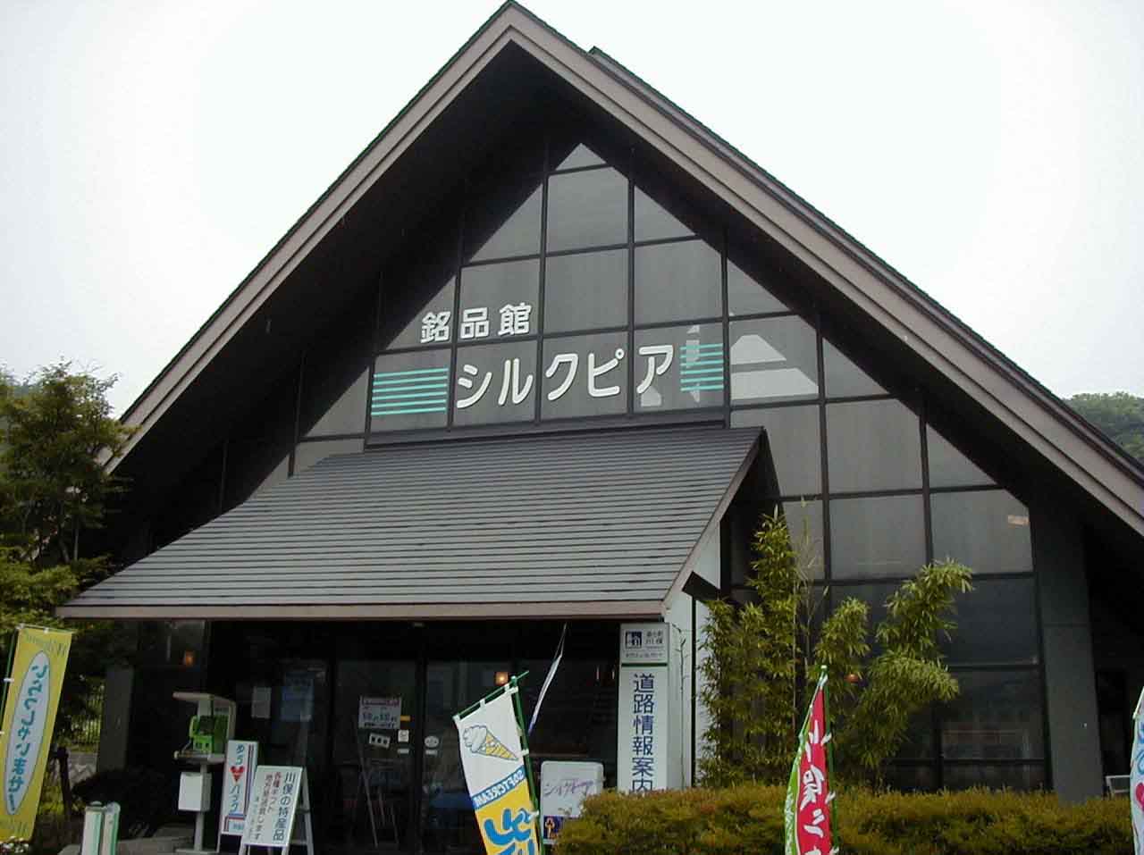 銘品館シルクピアでは、乳製品、にがり豆腐(川俣にがり)、陶器(常泉寺窯)、かや糖、川俣ハム、川俣シャモなど、地元の特産品(最近、地酒「織姫」が加わったようです)と並んで、絹織物製品が多く展示即売されています。