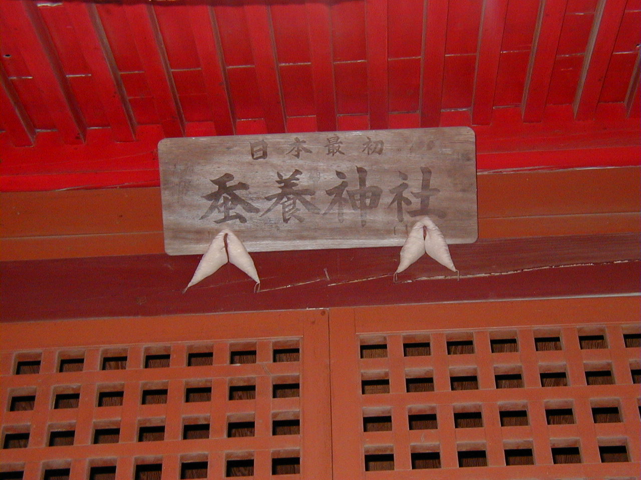 北橘村役場のあたりで県道43号から下に下っていくと、村社赤城神社に隣接する形で蚕養神社があります(形の上では合祀でしょうか)。額には「日本最初蚕養神社」とあります。