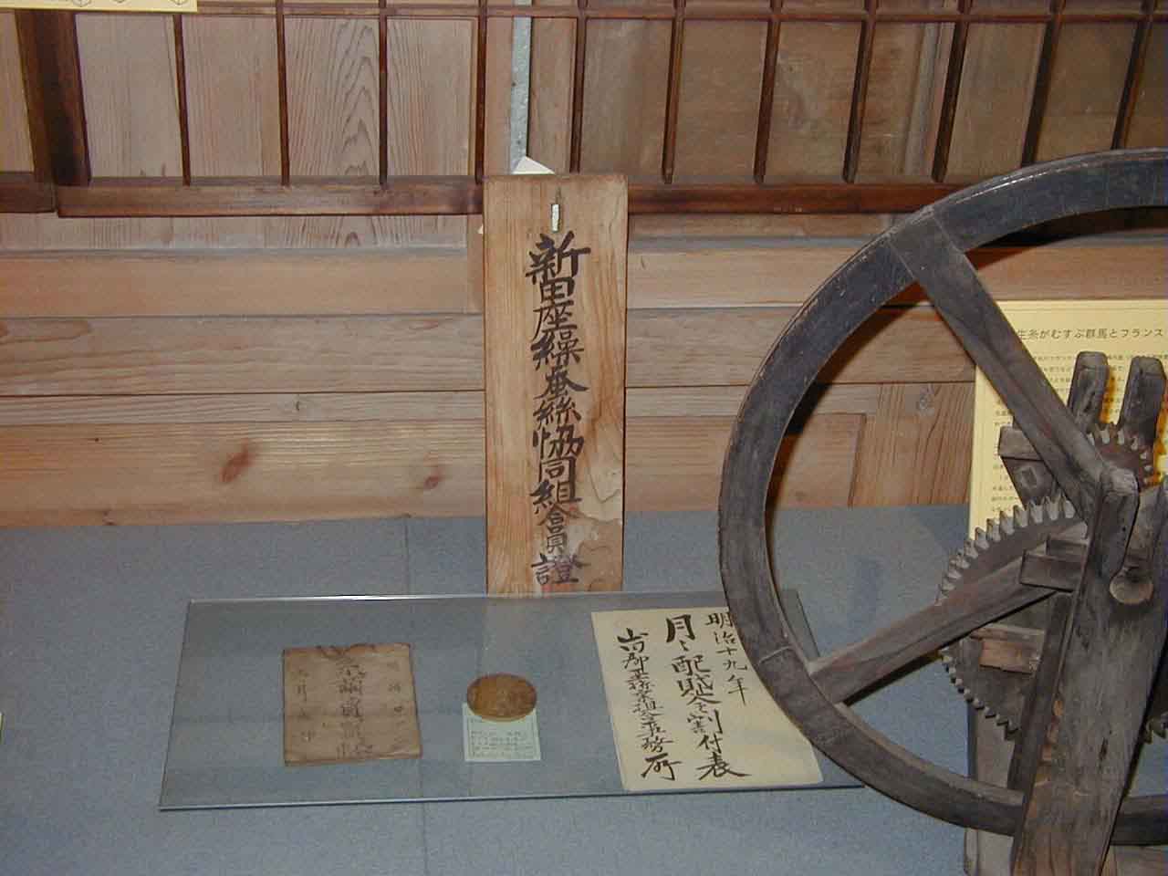 幕府は長い間鎖国政策をとっていましたが、欧米列強からの強い要求によって、安政6年(1859)年横浜などで外国との貿易を開始しました。当時の日本からの輸出品の大部分を生糸が占めており、上州からも大量の生糸が輸出されました。当時、大間々からは藤屋藤三郎・不入屋伊兵衛・吉村屋幸兵衛ら、3人の生糸商人が進出しており、中でも吉村屋は明治9年には日本からの生糸輸出量の15%を扱うまでになっていたということです。
