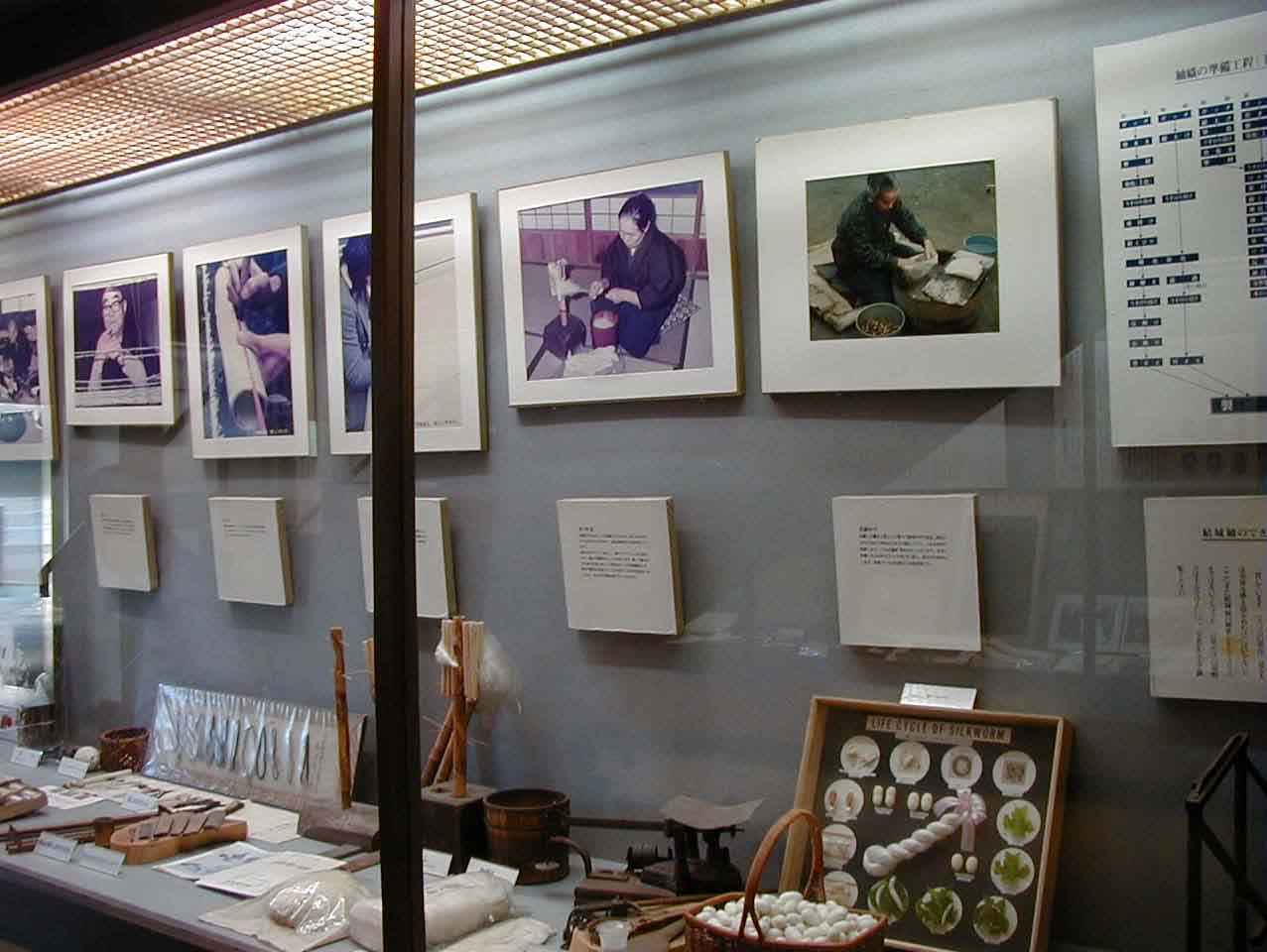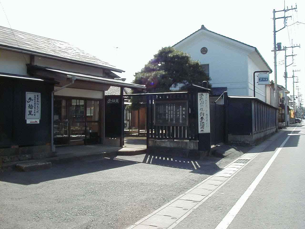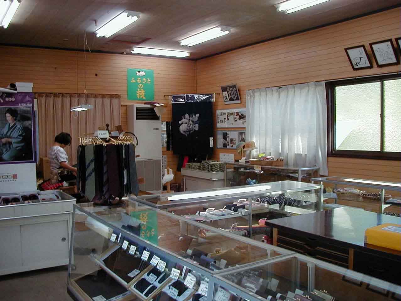 右手の土蔵が資料館、左手が受付、織り場および売店