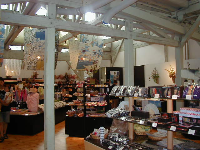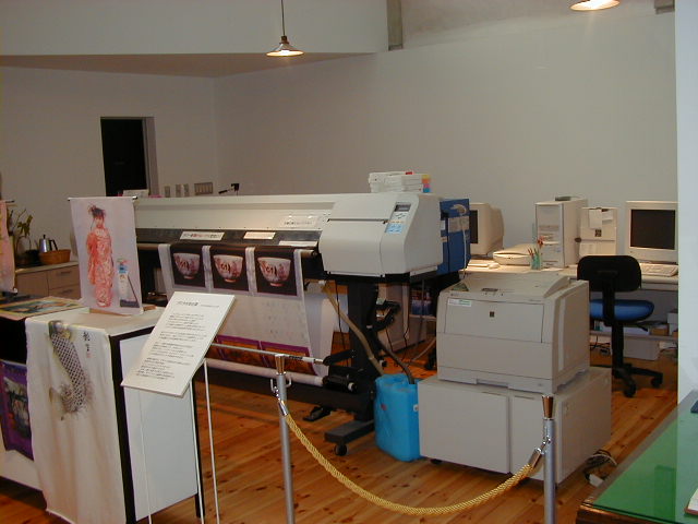 館内は、「丹後ちりめん見学工場」「手ばた体験工房」「デジタルデータのシルク染色工房」「引き染め体験工房」「試作品PR展示販売」「ショップ」などのコーナーに分かれています。館内が広いことと、ノコギリ屋根の北窓から入る柔らかな自然光のおかげで、ゆったりと見学して回ることができます。