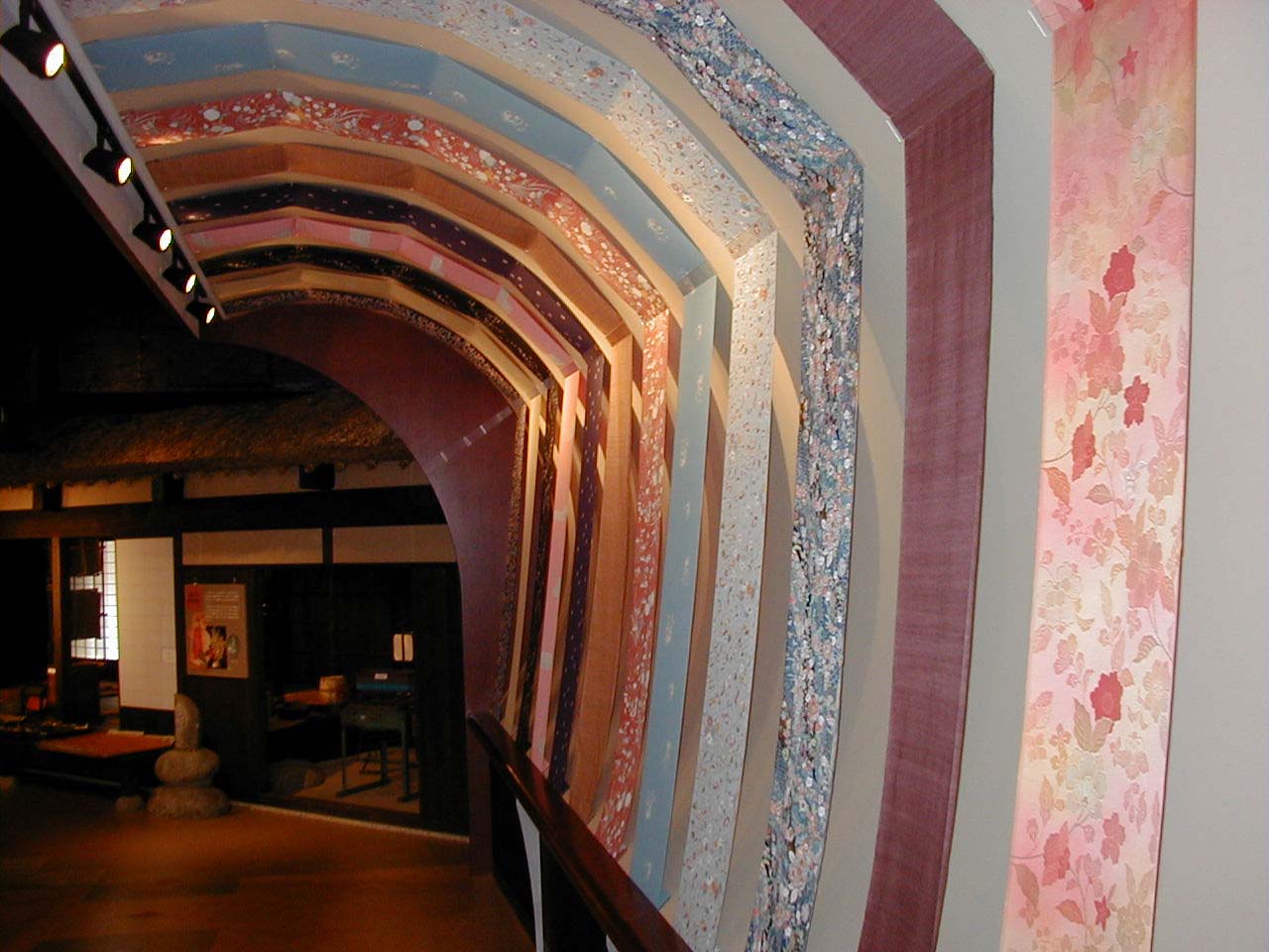 案 内:駐車場から上の写真の入口を入ったところはミュージアムの2階で、展示室に行くには階段を降りて1階に行きます。受付に続く、目の覚めるようなシルクのエントランスの先に常設展示室があります。