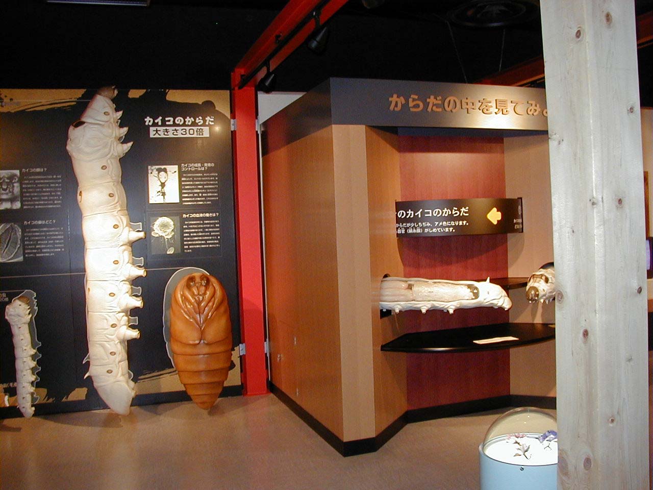 「シルクの歴史を知る」コーナーでは、シルクの源流と世界への広がり、駒ヶ根の糸がどのようなルートで海外へ運ばれていったか、などが紹介されています。「これからのシルクを知る」コーナーでは、医療素材、美容素材として見直されているシルクの新しい可能性が展示されています。「シルクの魅力に迫る」コーナーでは、世界のシルク民俗衣装の展示や、織物以外のシルクの使い道を通して、素材としてのシルクの秘密と魅力が展示されています。「カイコの不思議を知る」コーナーでは、昆虫としてのカイコの身体の仕組みなど、科学の目で見たカイコを知ることができます。