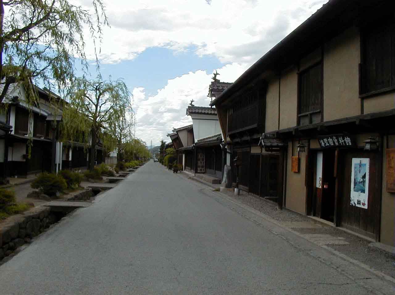 宿場の延長は約6町(約650メートル)で、東と西には桝形が置かれ、東の桝形には番屋がありました。街道の真ん中には用水が引かれ、上宿・中宿・下宿に分かれていました。