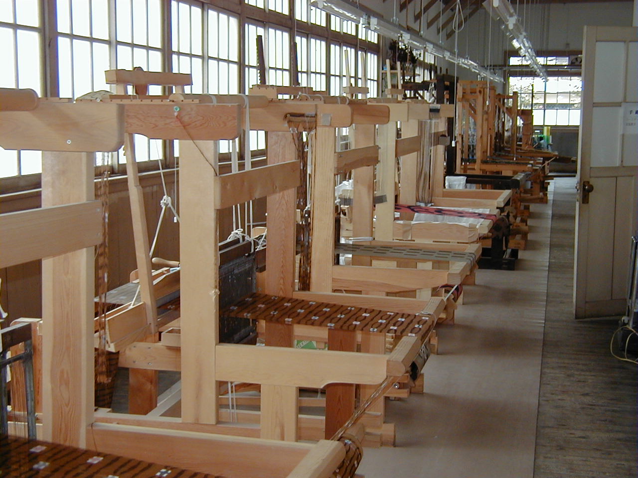 奥の建物の右手では、手染めや手織りの体験ができるコーナーがあります。