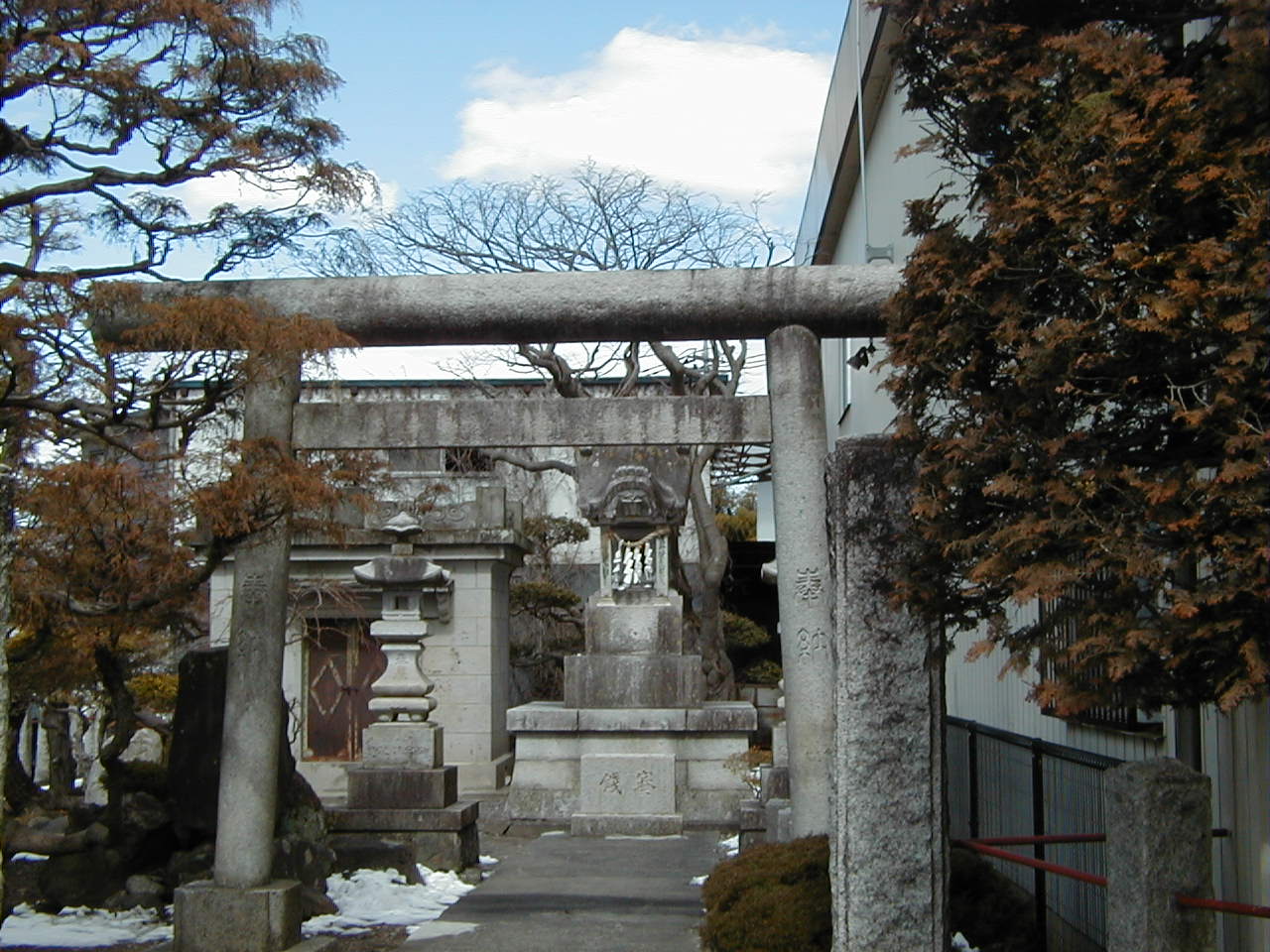 案 内: 国道299号線から北に、「武甲の湯」の方に入ってしばらく行くと、スーパー「やおよし」に隣接して、織姫神社があります。昔、この辺りに丸大織物の工場があった時に作られたもののようで、現在、向かいで荒船医院を経営している方の先代が経営者だったという話を土地の方からききました。