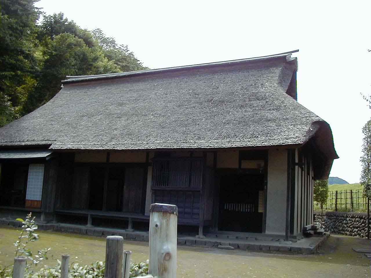 野外には、赤門、旧田中家長屋門、旧下田家住宅(下の写真)が展示されています。旧下田家住宅は、羽村町羽西1丁目13番地3号にあった下田季吉氏の家を譲り受けたものです。記録によると弘化4年(1847)に建築されたもので、この地方の一般農家の姿をよく表しており、この民家で使用されていた生活用具や養蚕用具など、1,210点がよく保存されていることから、建物、民具を含めて国の指定重要有形民俗文化財の指定を受けたものです。