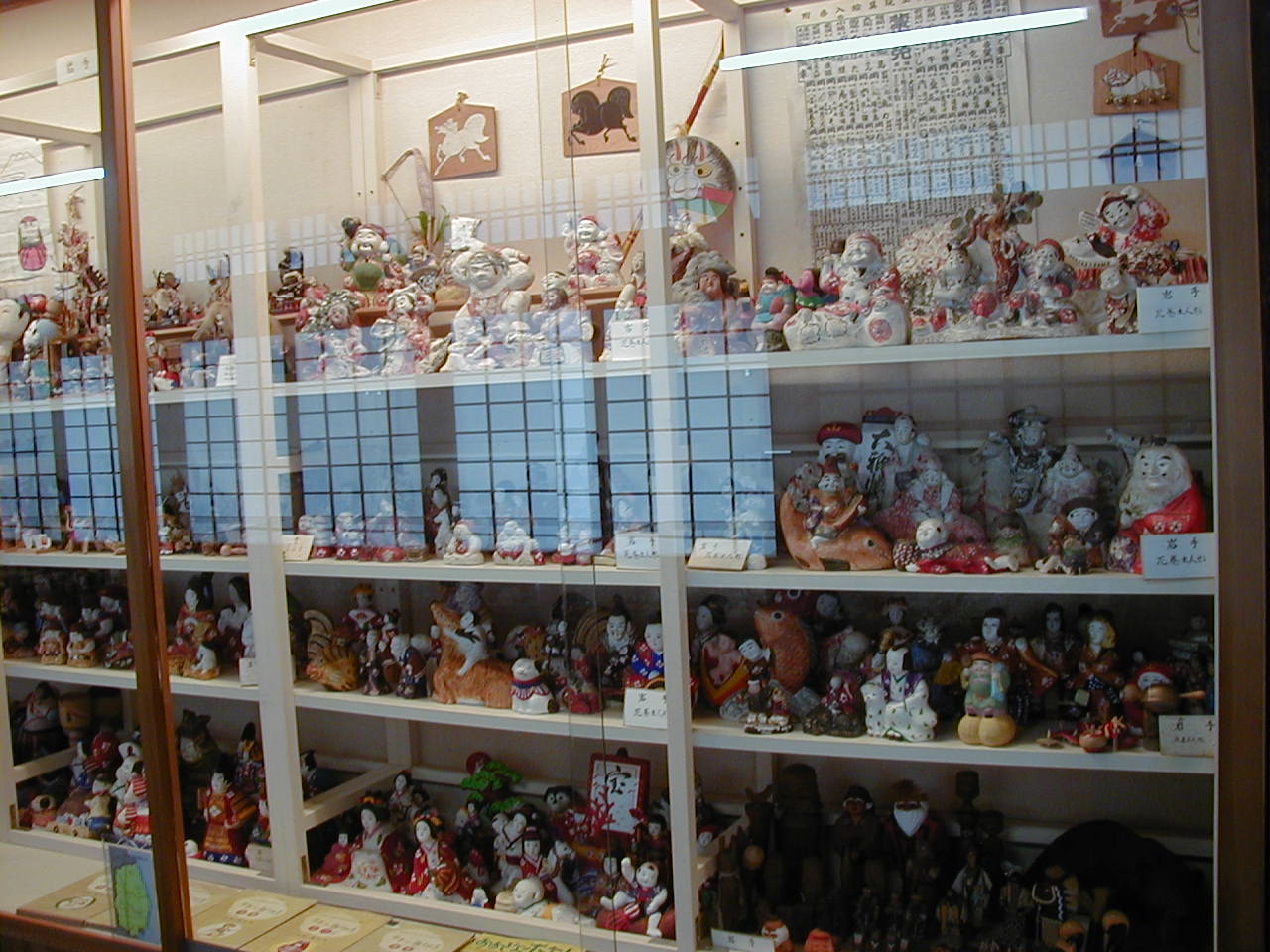 左:1階内部に展示された蚕具等、右:2階の郷土玩具