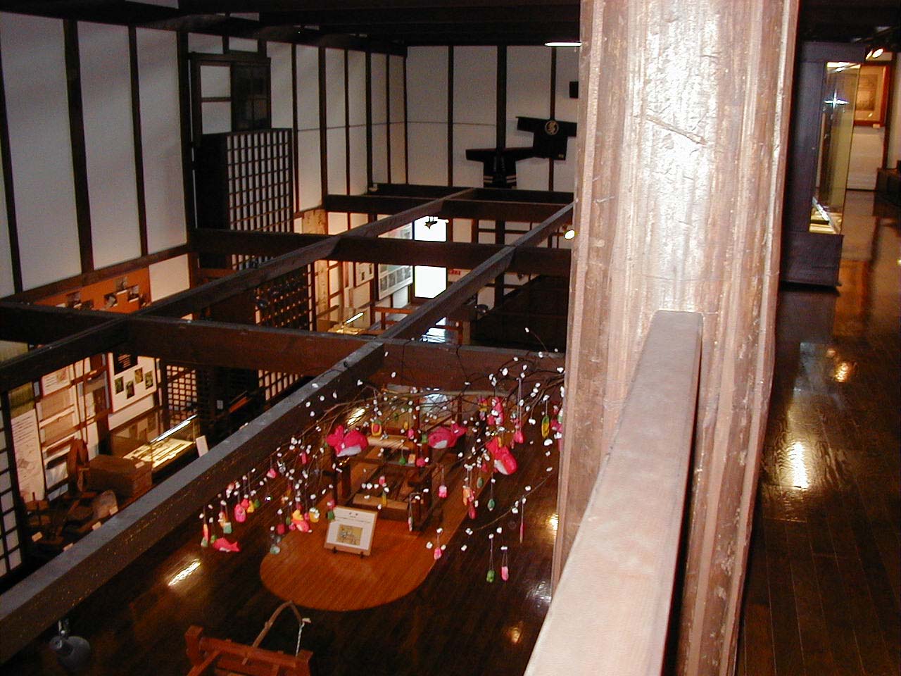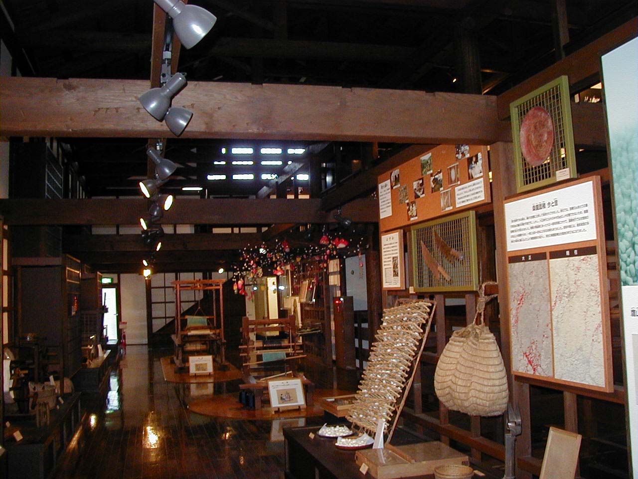 資料館は、3階建てになっており、1階には映像ホール「夕鶴座」、37年間にわたり夕鶴のつうを演じた女優山本安英さんの資料を中心に展示した「夕鶴の世界」、戦後のこの地域の農家の内部を復元したジオラマ「金蔵の家」があり、2階から上に、青苧・養蚕・繰り糸・織り・暮らしと養蚕信仰・近代製糸など、この地方で昭和58年頃まで行われていた生業が民具展示を軸に紹介されています。