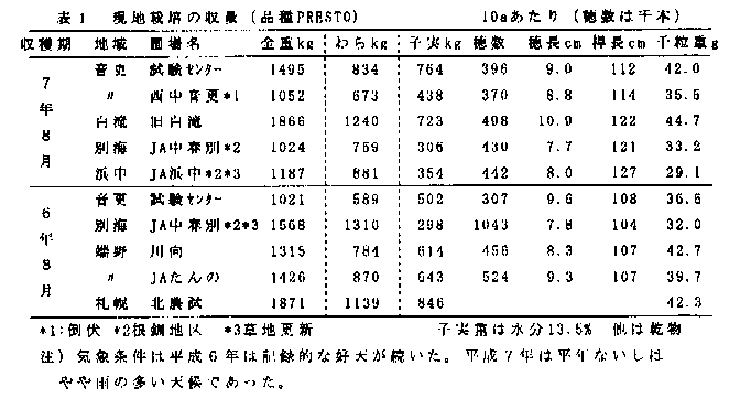 1.根釧地区のような牧草地では作業・機械体系などが畑作と異なるため,それらを十分に検討して,らい小麦の導入を行う必要がある。