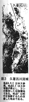 3.変化した流路は自然堤防の決壊箇所から湿原内に流入し土砂を堆積させる。その堆積の特徴は、堆積進行中の地点は土砂が露出しているのに対して、停止した地点ではヨシが繁茂していることである(図3、図5)。また写真撮影時期から推定すると久著呂川では土砂堆積活動期間はほぼ5〜10年である。この値は当然堆積期間中の河川流量に関係してくる。