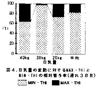 A 重回帰分析法により、日乳量変動に対するMAX・THIとMIN・THIそれぞれの寄与の程度(相対寄 与率)を調べた。その結果、全体の7〜8割をMIN・THIが寄与していることが明らかとなった(図4)。