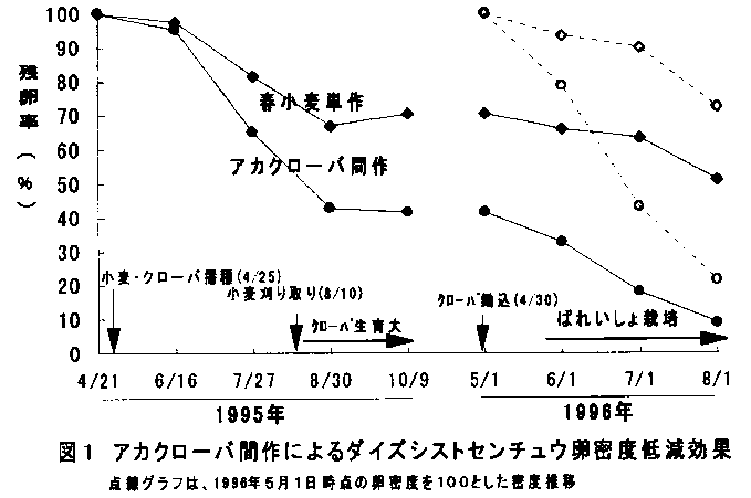 発表論文等:ダイズシストセンチュウ防除技術としてのアカクローバの間作、日本線虫学会講要、1996