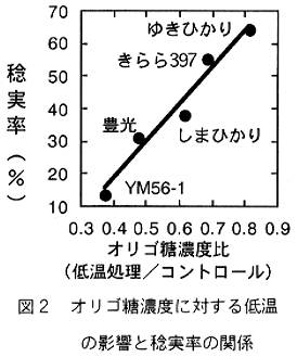[要約]イネの雄しべには、花粉の生育に同調して高濃度のアラビノガラクタンプロテインとアラビノガラクトオリゴ糖が順に蓄積する。低温(12℃)はこれら糖質の代謝を阻害するが、耐冷性の強い品種ほど阻害されない傾向がある。