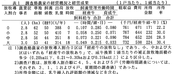 - 以上、天北地域の酪農経営において放牧導入割合を高めることは、労働時間の短縮および経営経済