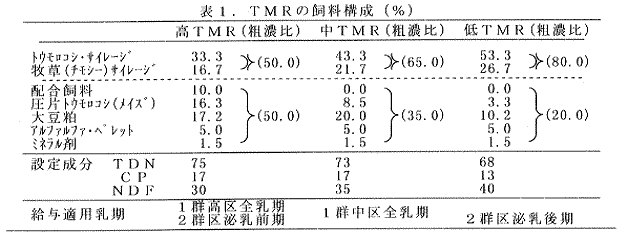 他に比べて乳量多い傾向がみられたがその差は僅かであった。1群中区(粗濃比 65:35, TDN