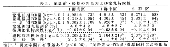 - 本成績は2産以上の経産牛により得られたものである。従って、初産牛を除いて一乳期