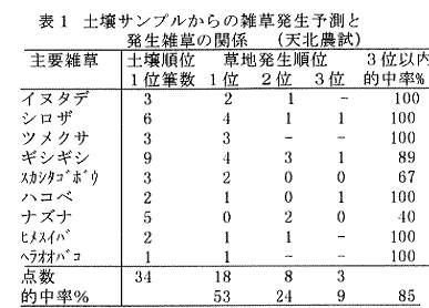 ね一致し、土壌サンプルから草地の発生雑草を予測することが可能である。また、発