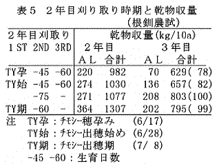 く、 3年目の収量も減少したことから、2年目草地は十分に生育期間を取った2回刈