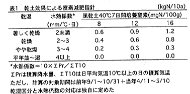 - 圃場の乾燥にともなう当年の乾土効果を風乾土培養窒素量と水熱係数をもとに推定