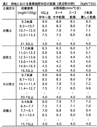 - 2の結果から、風乾土培養窒素量の分析値を「施肥標準」(北海道、平成7年)の