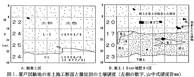 し容積重80g程度、固相率35%以下の褐色低地土(留辺蘂試験地)では、客土により