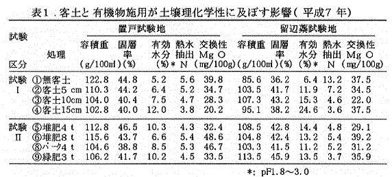 (留辺蘂試験地)でも有効水量には改善がみられる。反面、客土により有機物、養肥分