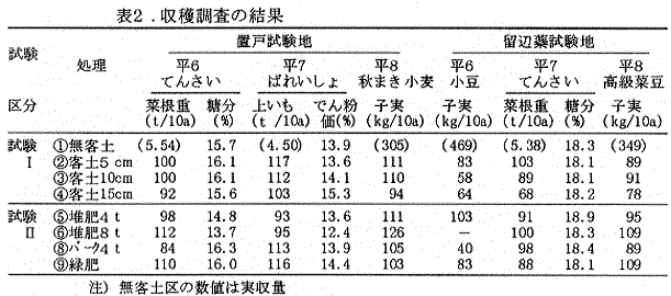 は、10cm程度の客土が適量であり、施工2目以降増収が得られる(表2)。これに対
